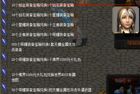 全属性攻击+2555天魔牛逼装备=100一套、专属世界BOSS兑换共享地图=100元一张