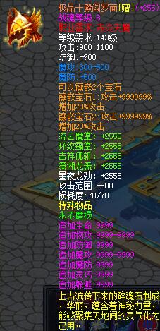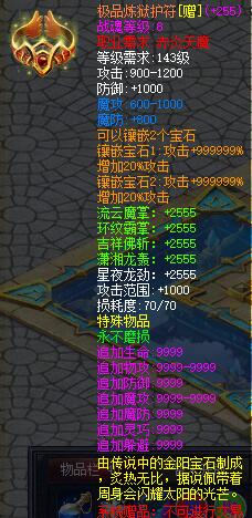 魔魂+248属性+255装备。属性武器圣杯宝箱一个、顶级会员定制宝宝4只、东海小龙王宝6只、送本命剑6只、存折60000张,开5宠、天皇、地魔、人帝福利卡