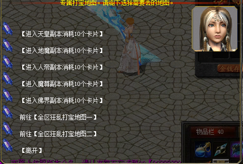 雷鸣、迷宫、雷鸣矿洞、高级打宝地图一、高级打宝地图二,VIP天皇地图、VIP地魔地图、VIP人帝地